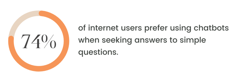 Moreover, 74% of internet users express a preference for using chatbots when seeking answers to simple questions, according to data from PSFK. This emphasizes the user-friendly nature of these AI-driven tools, making them a preferred choice for quick query resolution.14