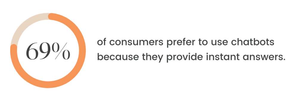 The preference for chatbots is further illuminated by the fact that 69% of consumers favor them due to their ability to deliver instant answers. This preference aligns with the contemporary demand for swift and efficient interactions, highlighting chatbots as a preferred means of engagement for customers seeking immediate solutions to their inquiries.18