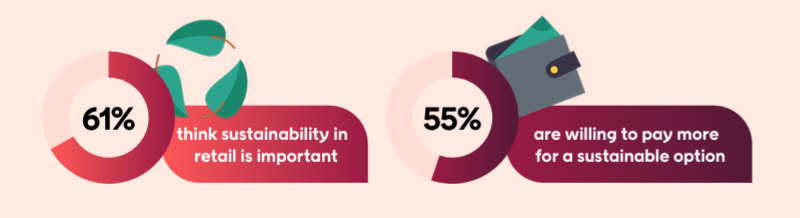 What’s obvious is that sustainability remains another top priority for Swedish consumers. 61% of them consider sustainability important in retail, and 55% are willing to pay more for sustainable products. And it’s evident across various sectors, like food, fashion, and electronics.
