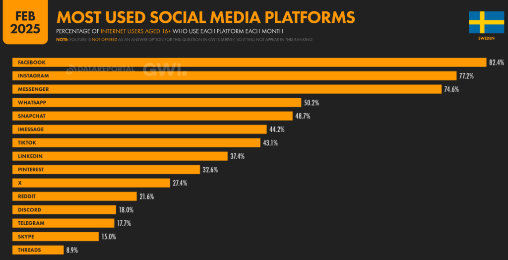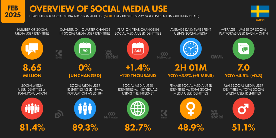 This widespread adoption is supported by nearly universal online penetration at 98.3%. So almost everyone in Sweden has access to these digital spaces.