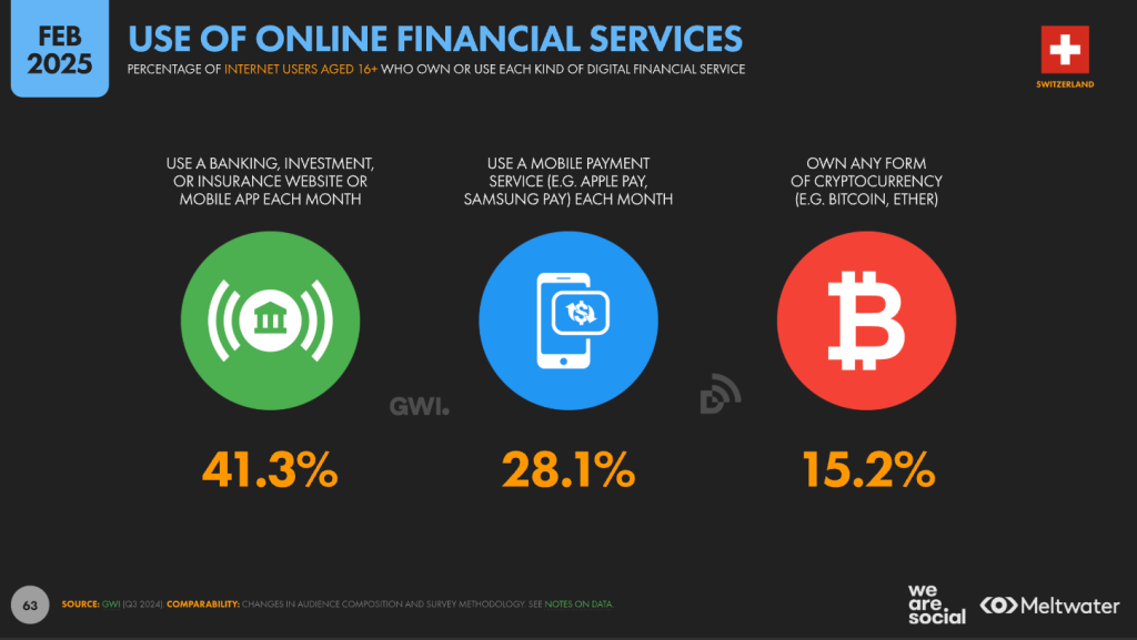 The local super-app TWINT underscores this shift, reporting 6 million+ active users with 99% awareness among adults—an enormous reach in a nation of ~8.9 million. For ecommerce checkouts, expect TWINT alongside debit/credit cards; bank transfers persist for high-value purchases; cash-on-delivery is now niche.