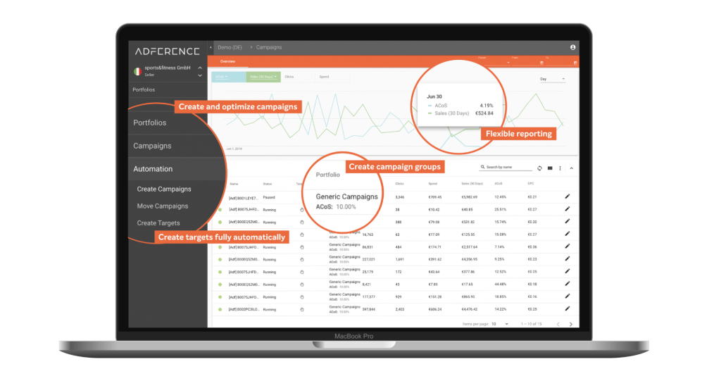 ADFERENCE provides powerful PPC optimization for Amazon Advertising. ADFERENCE’s innovative PPC solution empowers advertisers to automatically create granular campaigns and to place the right bids for millions of products and keywords. We make the most of your campaigns on Amazon by using scientifically developed machine learning algorithms, bringing a complex set of factors together in an ideal campaign setup. Your gain: Better performance and less manual effort in optimizing your campaigns.